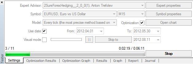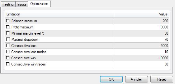 A última linha diz respeito ao algoritmo genético que tenta tornar o processo mais inteligente. Quando o software percebe que certos parâmetros irão inevitavelmente resultar numa perda, o algoritmo ignora o teste. Esta opção acelera a otimização, que por vezes pode ser muito demorada.